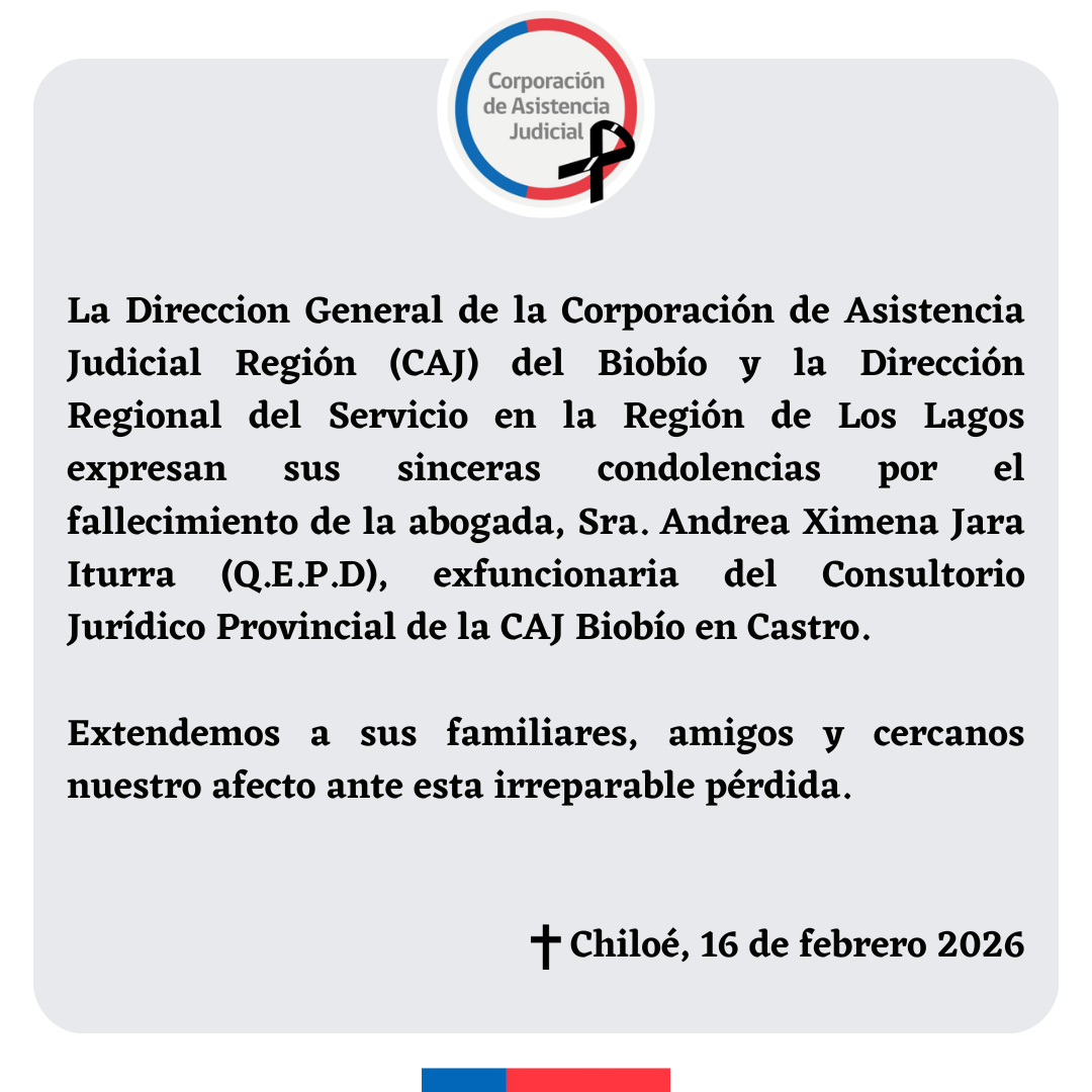 Como CAJ Biobío, extendemos nuestras más sinceras condolencias a su familia, amistades y a quienes compartieron con ella su vida personal y profesional. Acompañamos su dolor en este difícil momento y rendimos homenaje a su valioso aporte institucional y humano, que permanecerá en la memoria de la CAJ Biobío.